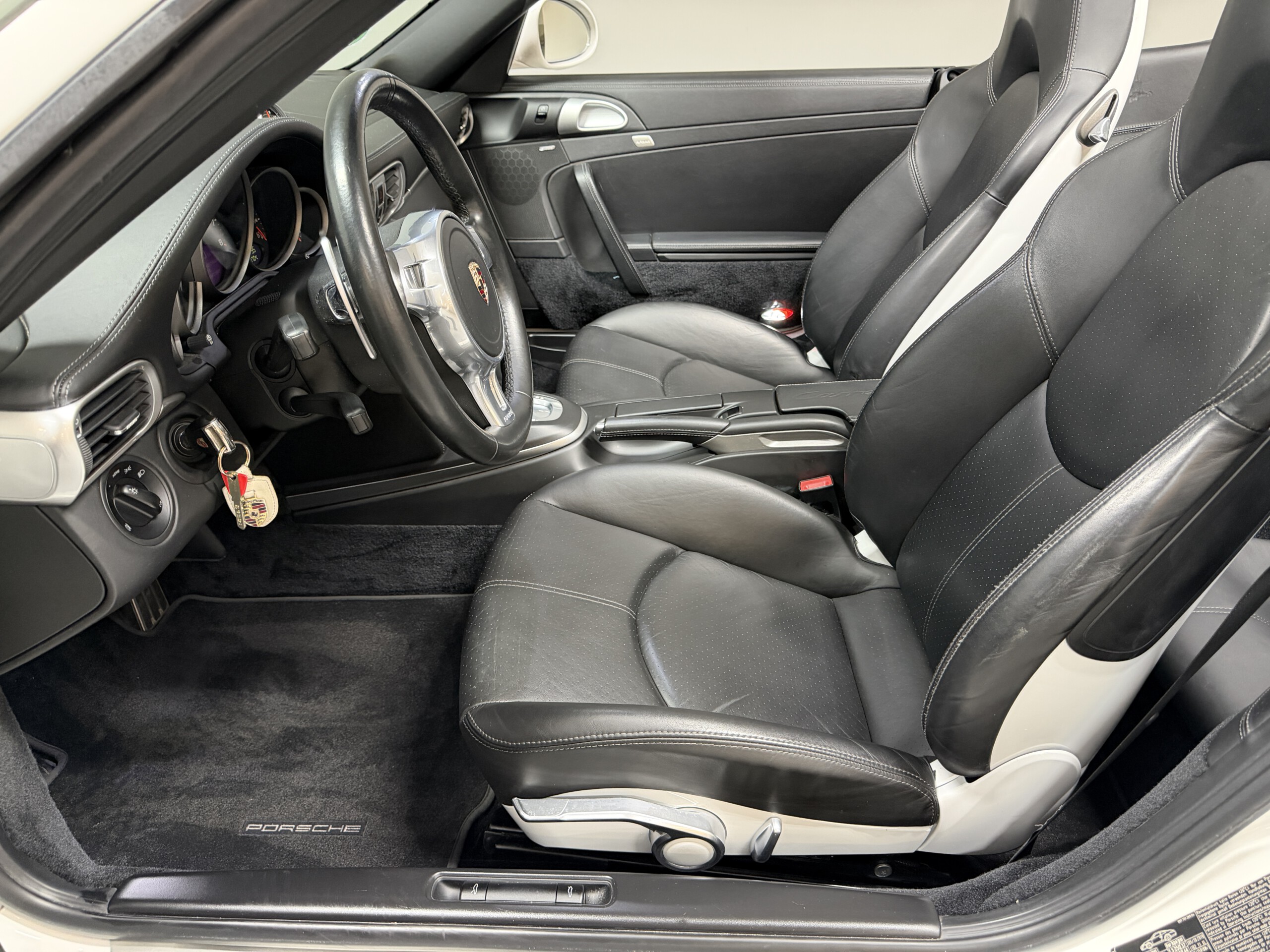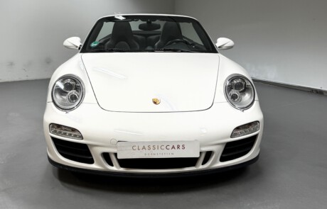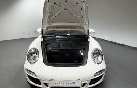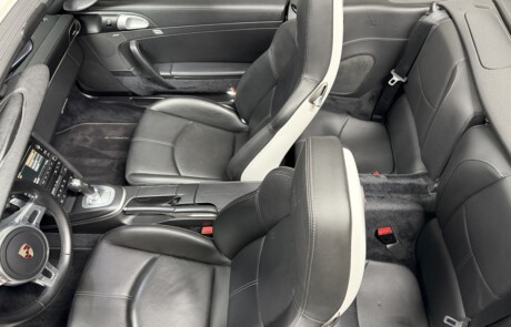 Wahlweise gab es ihn mit 6-Gang-Handschaltung für Romantiker oder mit dem blitzschnellen PDK-Getriebe für Perfektionisten. Beides macht süchtig – nur auf unterschiedliche Art. Der GTS bekam ebenso die breite Karosserie des Allradmodells – auch als Hecktriebler, weil Helden nicht ziehen, sondern schieben. Das Ergebnis war ein 911 mit Athletenstatur. Schwarze Details an Felgen (RS Spyder Design), Lufteinlässen und Schriftzügen signalisierten: „Ich bin nicht hier, um Einkaufswagen zu schieben.“ Innen dominierte Alcantara – auf Lenkrad, Sitzen, teilweise sogar am Schaltknauf. Das fühlt sich an wie Rennstrecke, selbst wenn man nur zum Bäcker fährt. Der 997 GTS stammt aus einer Zeit, in der Servolenkungen noch hydraulisch waren. Das bedeutet: ehrliches Feedback statt Computersimulation. Man spürt die Straße, jede Unebenheit, jeden Millimeter Haftung. Er ist kein brachialer Turbo, kein kompromissloser GT3 – sondern die goldene Mitte. Schnell genug für Gänsehaut, komfortabel genug für Urlaubsfahrten nach Südtirol. Viele Fans sehen im 997 GTS einen der letzten „analogen“ Elfer: Saugmotor statt Turboaufladung, kompakte Abmessungen, klassisches Zündschloss links vom Lenkrad und Mechanik, die noch nach Mechanik klingt.
